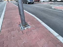 Oboren stub javne rasvjete koji predstavlja opasnost za prolaznike.
